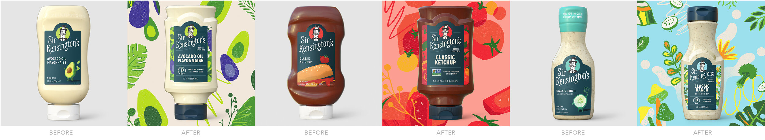Sir Kensington’s is a brand dedicated to defending the dignity of food by creating delicious condiments crafted with high-quality ingredients. The brand’s top-hatted and monocled character promises a rich taste and experience, but the packaging design needed a fresh take to stand out on the shelf.